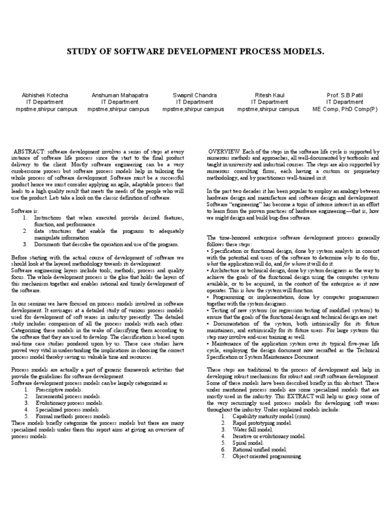 New Seminar Paper Process Models Software Development Process